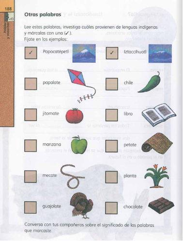 El Diccionario didáctico de español elemental de Concepción Maldonado —por ejemplo— dedica definiciones sencillas. Además, para los lemas o palabras de variedades lingüísticas amerindias ofrece, entre corchetes, su procedencia. Actualmente, la política educativa mexicana aboga por desarrollar competencias interculturales en todos los niveles educativos. Ante lo resbaladizo del concepto de “interculturalidad” algunas prácticas, acciones o estrategias educativas de este tipo contribuyen a generar actitudes positivas en el alumnado que, a la postre, deriven en la construcción del respeto de la identidad lingüística y cultural.