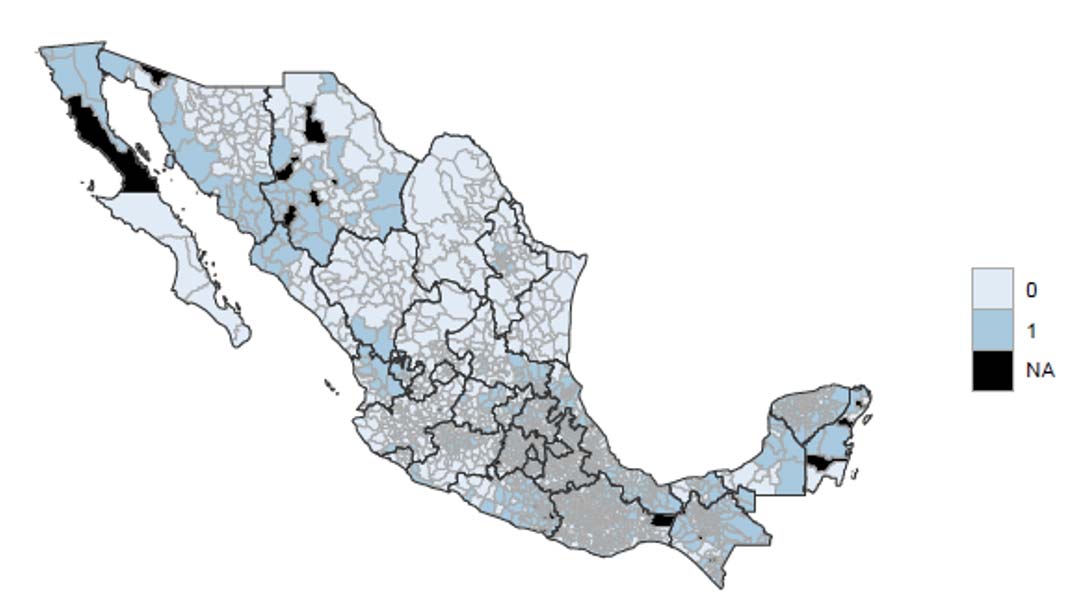 Como contexto, en México hay más de 10 000 escuelas de educación indígena distribuidas en 24 entidades. No todas formaron parte del programa, lo que permitió estimar un modelo de diferencias en diferencias con información municipal de los Censos y Encuestas Intercensales del Instituto Nacional de Estadística y Geografía (Inegi) y del Formato 911 de la SEP a nivel escuela. La información sobre cobertura del programa se obtuvo a través de una solicitud de información mediante la Plataforma Nacional de Transparencia. Entre 2014 y 2019, el 33.36 % de los municipios percibieron subsidios por parte del programa (817 municipios). Para contribuir a futuros estudios que estén interesados en utilizar los datos con los que se construyó la parte empírica de esta evaluación, queda a disposición pública el repositorio de GitHub que contiene el documento completo de la evaluación, el R Markdown con el código, todas las bases de datos y tablas de regresión.