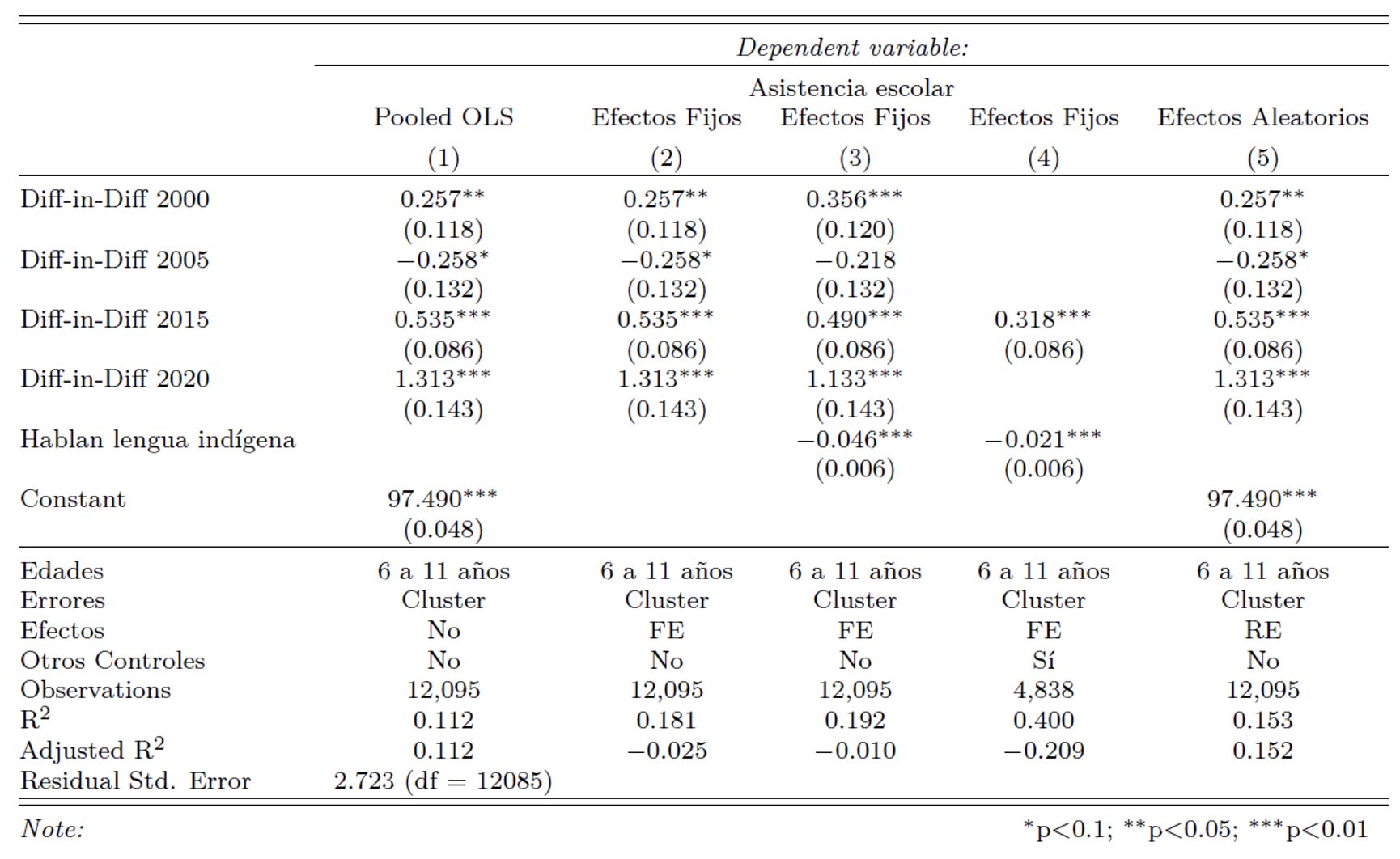 Tabla 2. Modelo de Diferencias en Diferencias sobre asistencia escolar por municipio