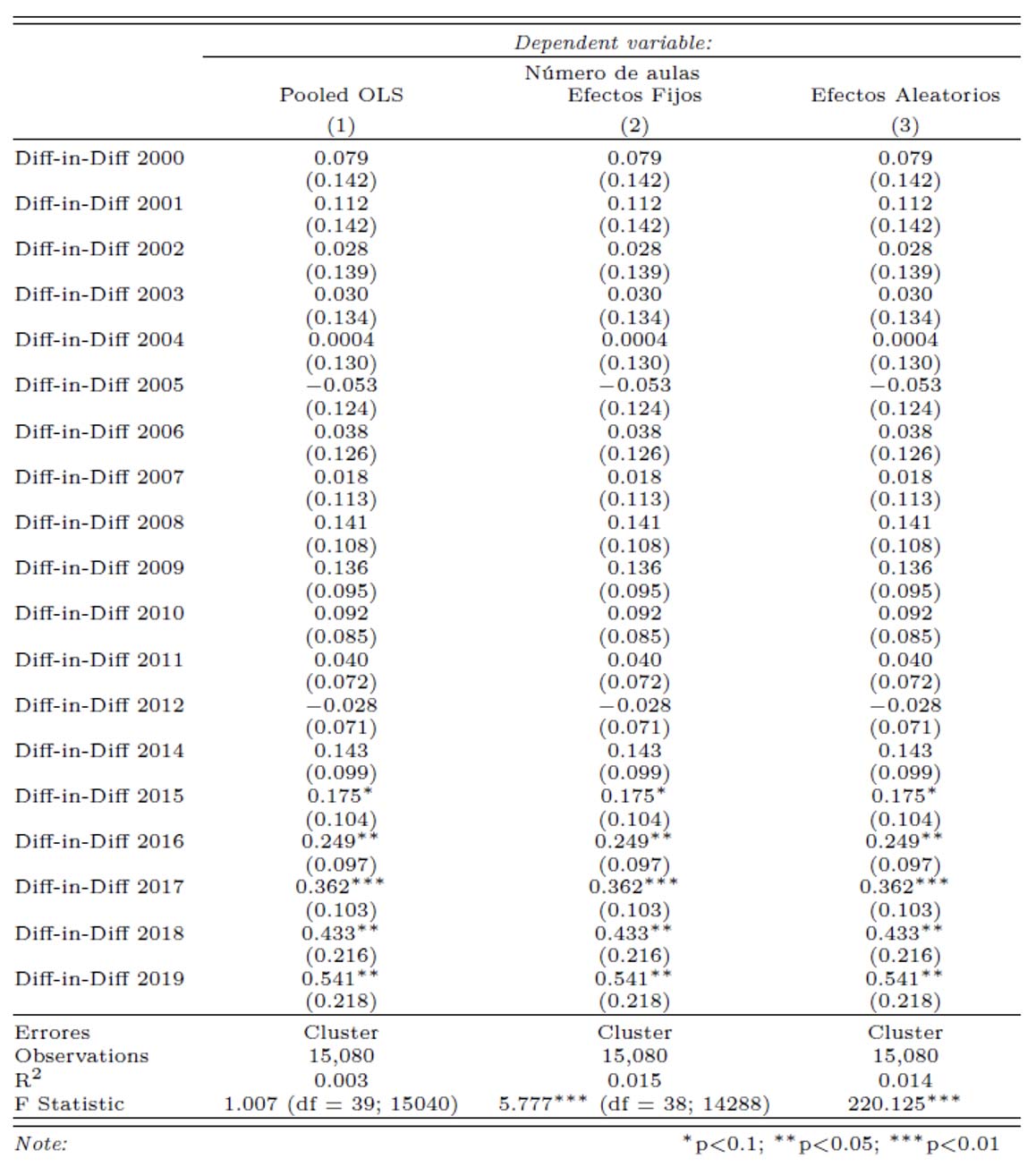 Tabla 4. Modelo de Diferencias en Diferencias sobre número de aulas por escuela