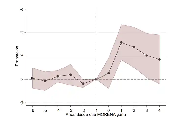 Figura 3. Impacto en la proporción de estudiantes becados BBJ tras triunfos electorales de Morena a nivel municipal